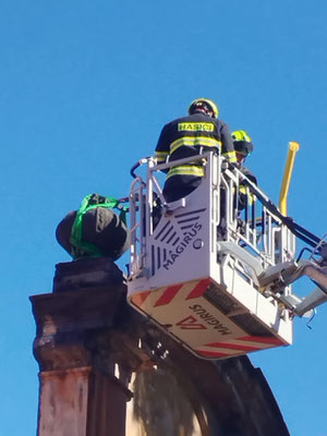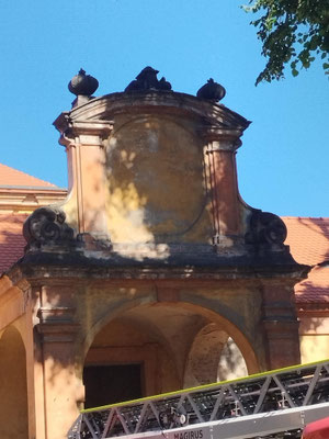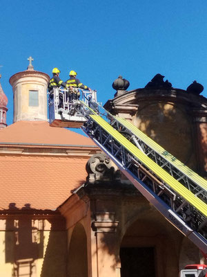 Vielen Dank an die Feuerwehr Litvinov, die mit ihrem Einsatz ein loses Fassaden Ornament gesichert haben. Somit ist gesichert das es nicht hinabstürzen kann.
